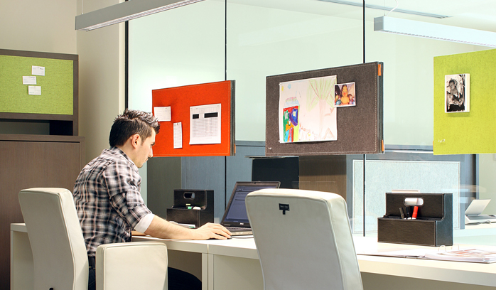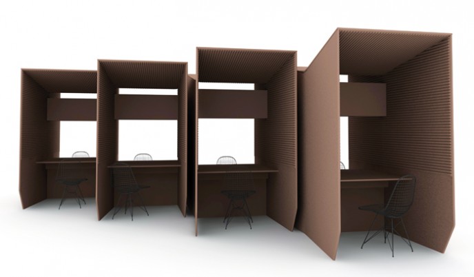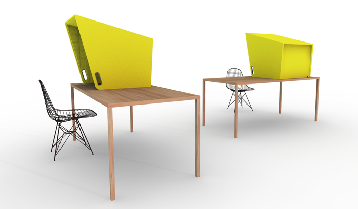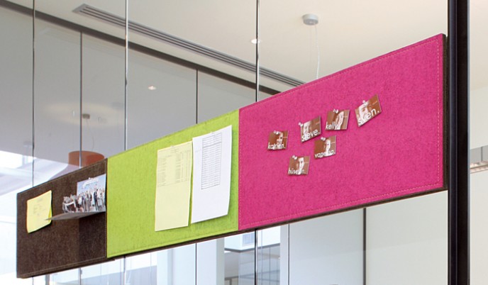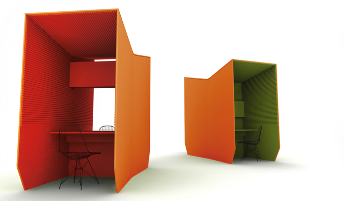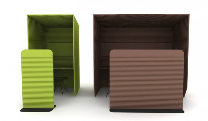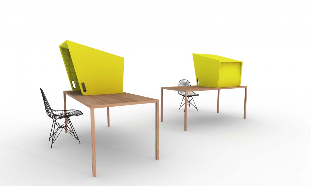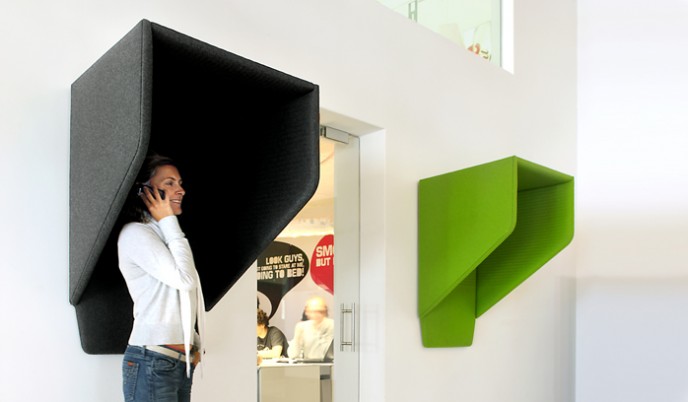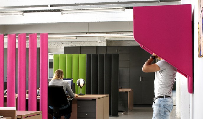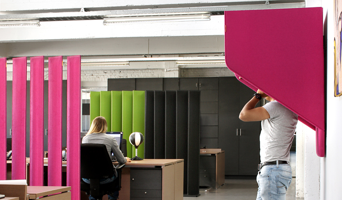 Naast de producten "met een knip-oog" zijn er ook serieuzere geluids reducerende producten in de collectie te vinden zoals vrijstaande en aan de wand te monteren panelen.