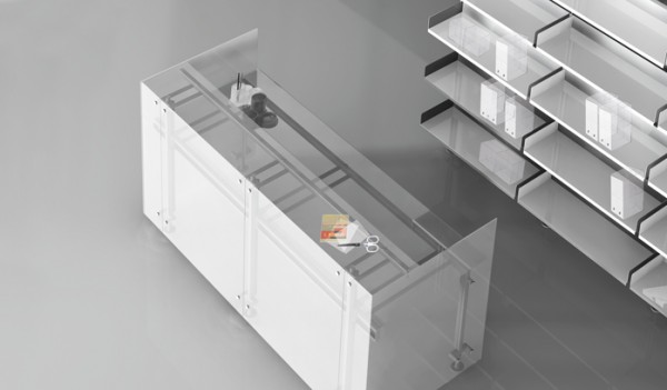Bij de vrijstaande wand oplossing van het Pole systeem is eveneens mogelijk om een loketbalie te maken. Naast de standaard opties voor staanders en panelen zijn er voor deze toepassing veel aanvullende mogelijkheden die eigenlijk resulteren in een taylor-made pasklare oplossing.