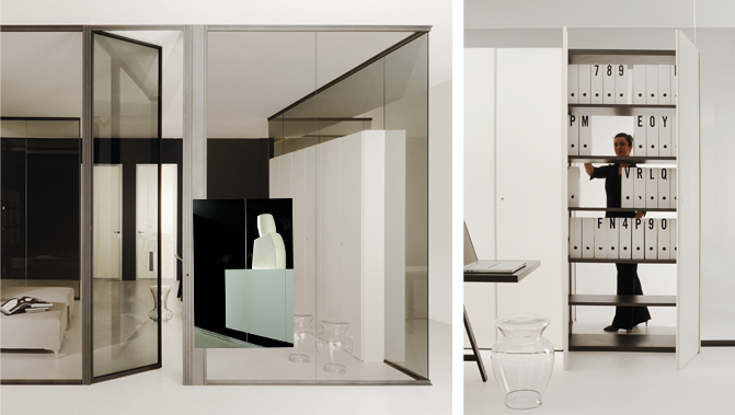 Bij het Simple! systeem bieden we u de mogelijkheid om kasten volledig in de glaswand te laten opnemen.