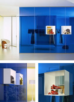 Deze volledig in het glas opgenomen kasten zijn ook met gesloten front leverbaar in horizontale en vertikale uitvoering, zoals hieronder afgebeeld.